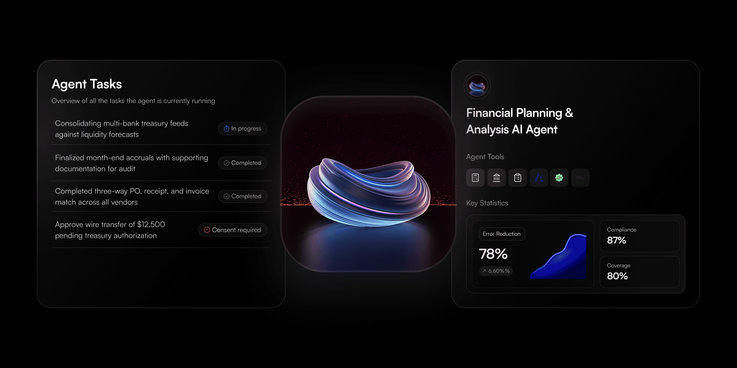 The Financial Planning & Analysis AI Agent builds forecasts, variance analyses, and board-ready reports by pulling actuals from your ERP and feeding planning models automatically. It compresses a weeks-long FP&A cycle into hours.