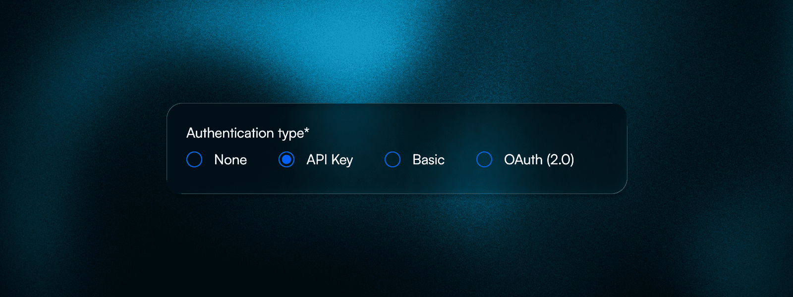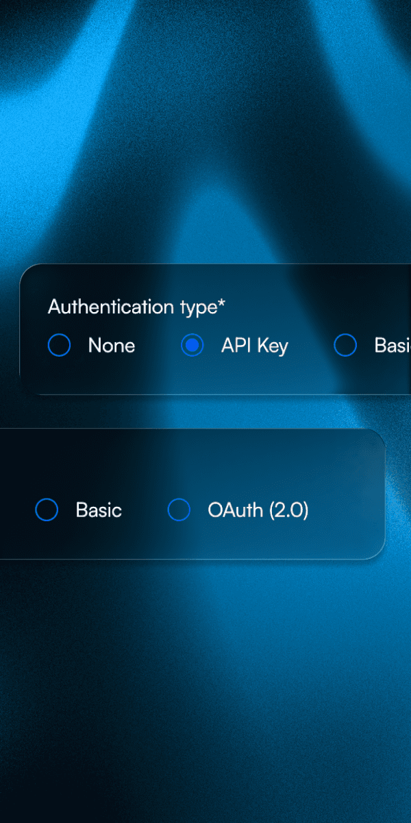 الاندماجات تصادق باستخدام بيانات الاعتماد التي تم تكوينها مرة واحدة لكل اتصال. تدعم OAuth 2.0 مع تحديث تلقائي للرموز المميزة، ومفاتيح API لحسابات الخدمة، وSAML لنظام الدخول الموحد للمؤسسات، والمصادقة الأساسية للأنظمة القديمة. عندما ينفذ الوكيل إجراءً ما، فإنه يستخدم بيانات الاعتماد المحفوظة تلقائيًا—بدون تمرير للبيانات في سير العمل، وبدون إدارة للرموز المميزة في كود الوكيل.