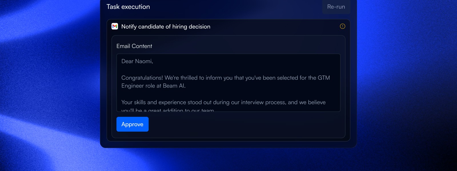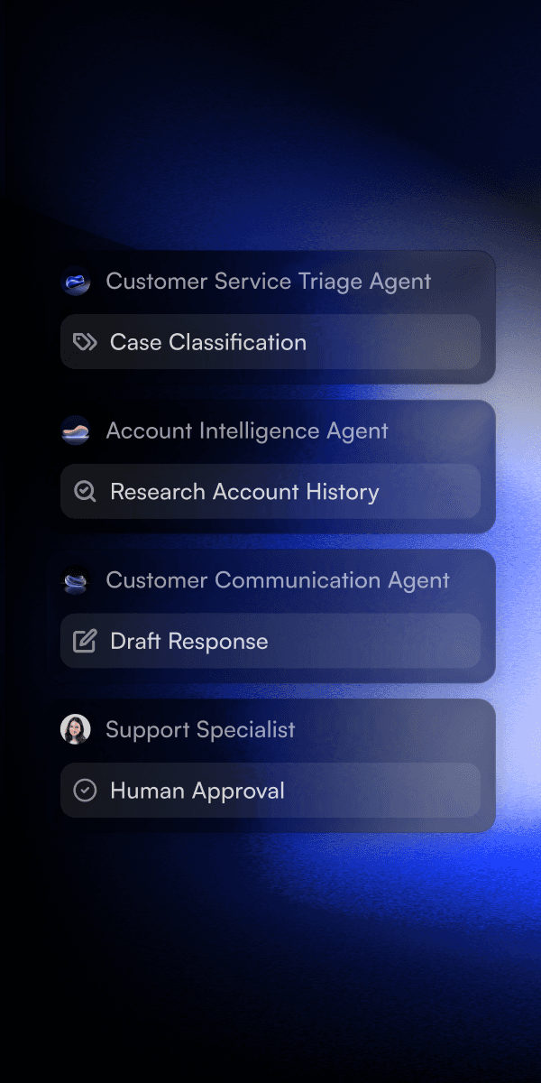 Agent OS ist Beams proprietäres Framework für produktive KI-Agenten. Im Gegensatz zu statischer Automatisierung lernen Beam-Agenten aus jeder Interaktion. Die Genauigkeit verbessert sich automatisch, ohne dass manuelle Wartung erforderlich ist. Die graphbasierte Ausführung kombiniert die Zuverlässigkeit von Workflows mit der Flexibilität von KI. Die Koordination von mehreren Agenten skaliert auf die Komplexität von Unternehmen. Das Ergebnis sind Agenten, die mit der Zeit besser werden, anstatt wochenlang fehlerhaft zu bleiben.