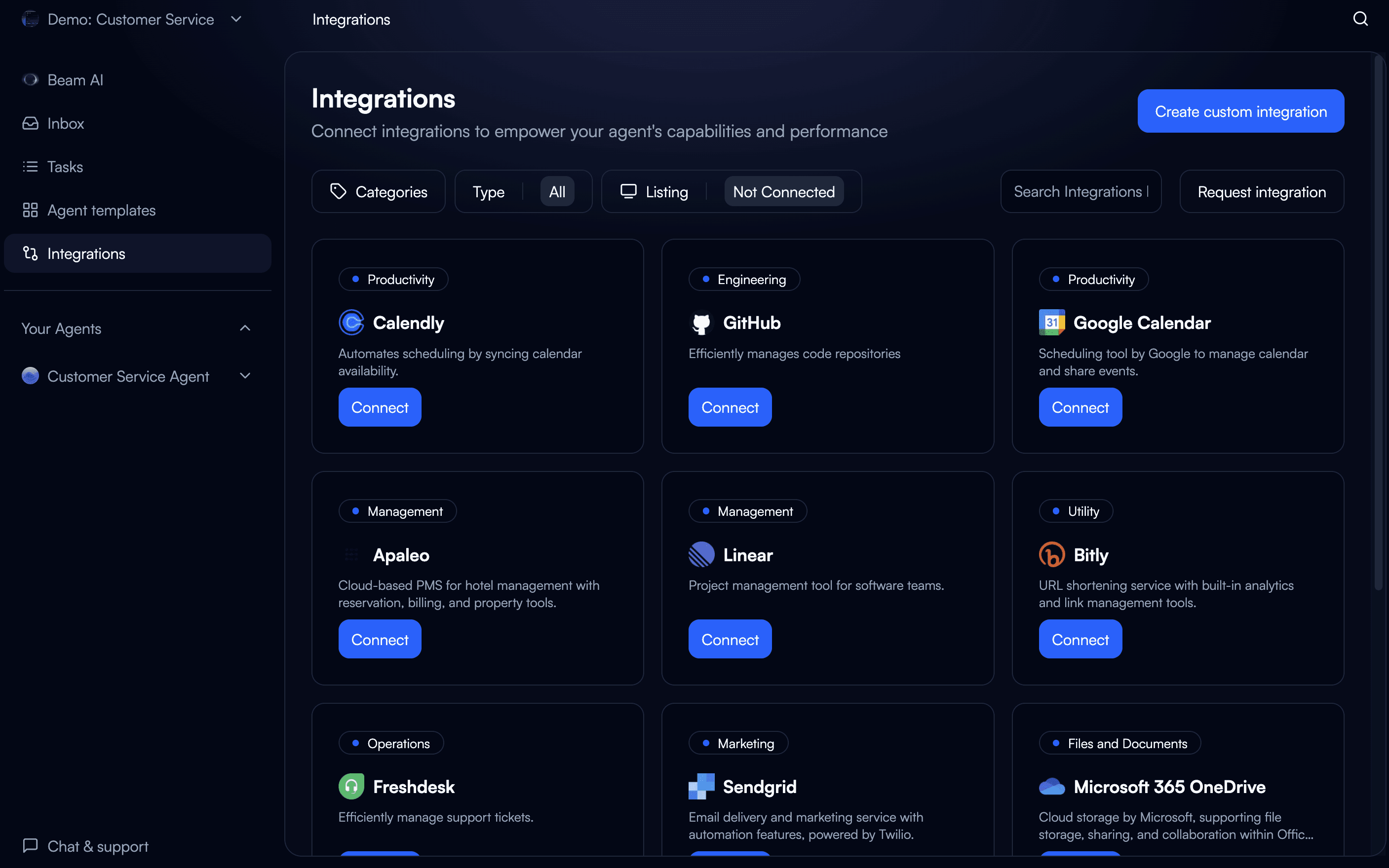Beam AI bietet native Integrationen mit mehreren Plattformen an, aber benutzerdefinierte Integrationen ermöglichen: