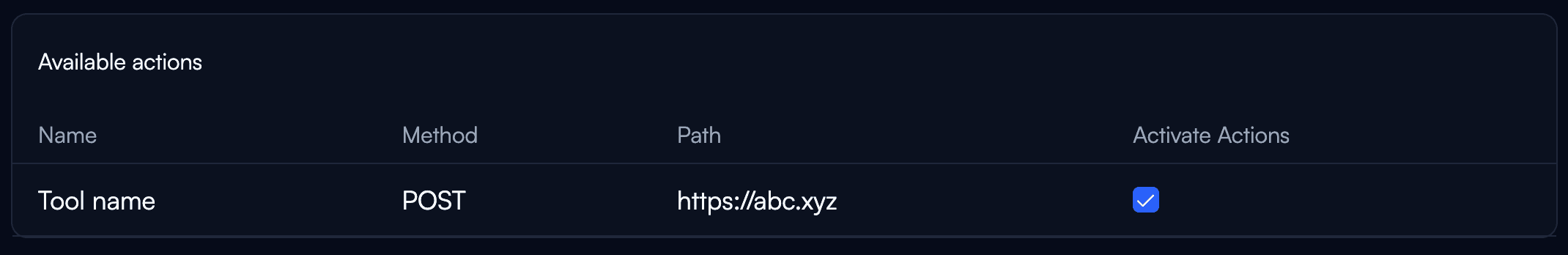 Aktivieren Sie die erforderlichen Maßnahmen, indem Sie das Aktivierungsfeld ankreuzen.