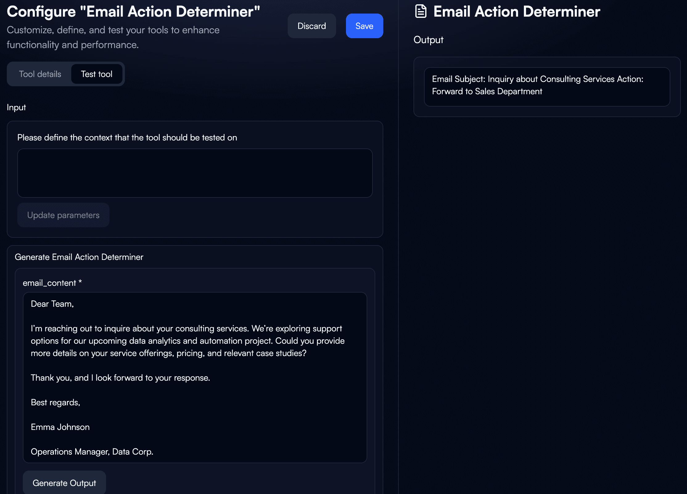 Beispiel: Ein Eingabeaufforderung-basiertes Tool kann eingehende E-Mails analysieren und deren Inhalt klassifizieren, während ein Integrations-basiertes Tool klassifizierte E-Mails an ein CRM weiterleiten kann.