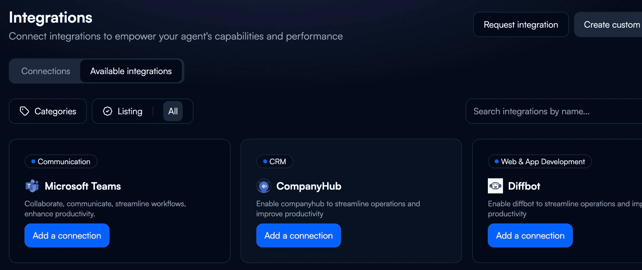 Beam AI: Broad Integrations catalog for CRM, service, commerce, marketing and developer tools, including Slack, Zendesk, Shopify and even Salesforce, enabling agentic workflows across your full stack.