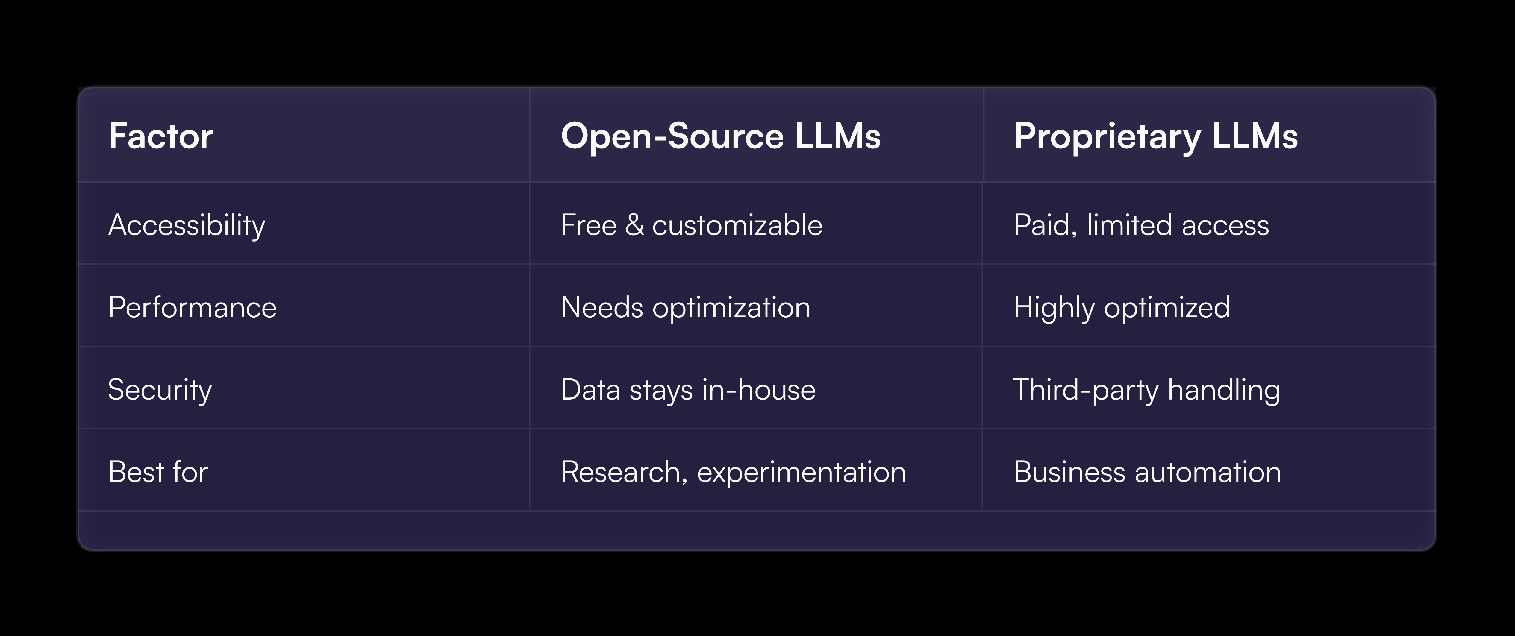 The best open-source large language models offer flexibility and customization options, while proprietary solutions often provide higher performance and better support. Beam AI supports you in selecting the optimal solution for your specific requirements!