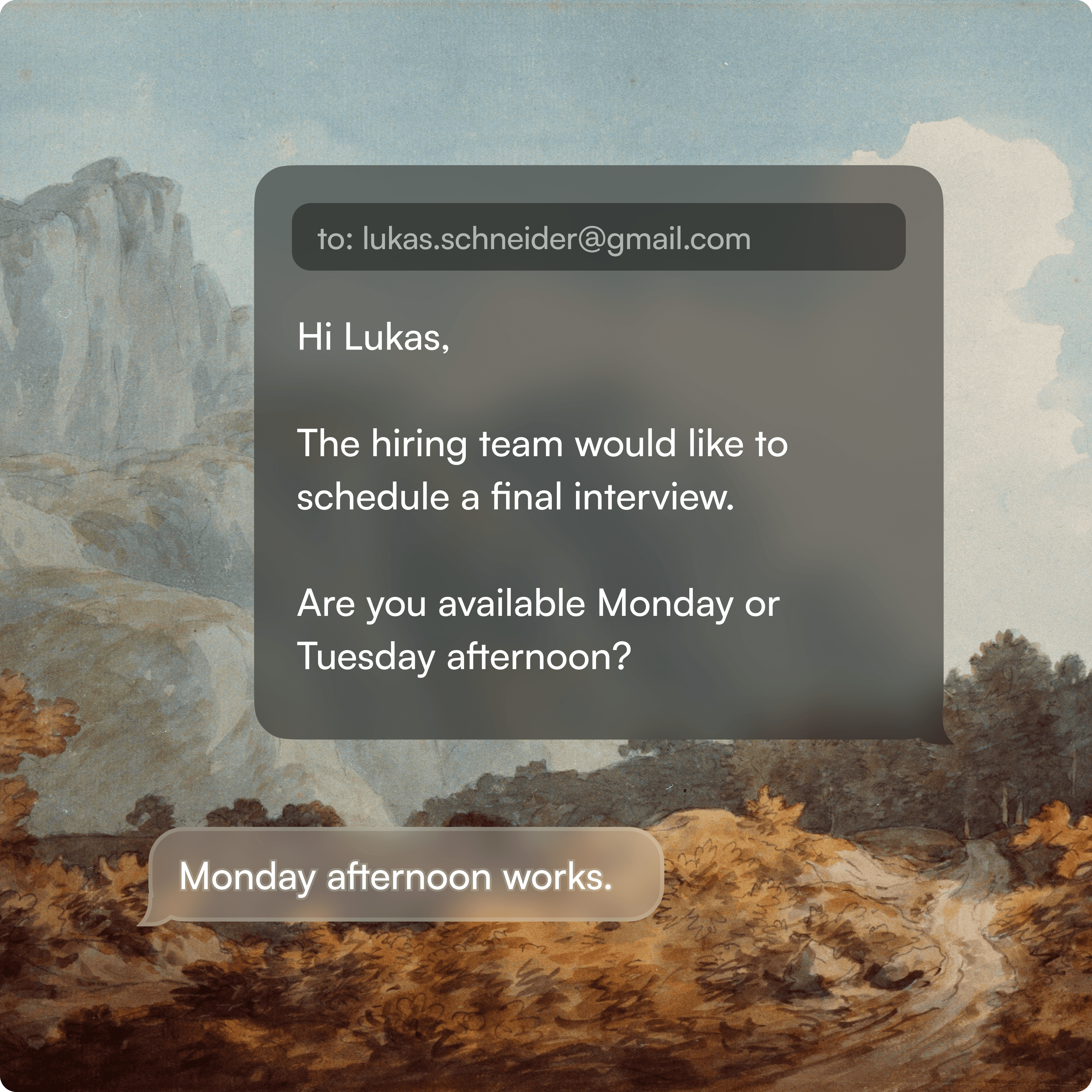 Coordinate interviews across candidates, recruiters, and hiring managers automatically. AI agents handle availability, schedule interviews across calendars, and confirm meetings instantly so teams can move candidates forward without the back-and-forth.