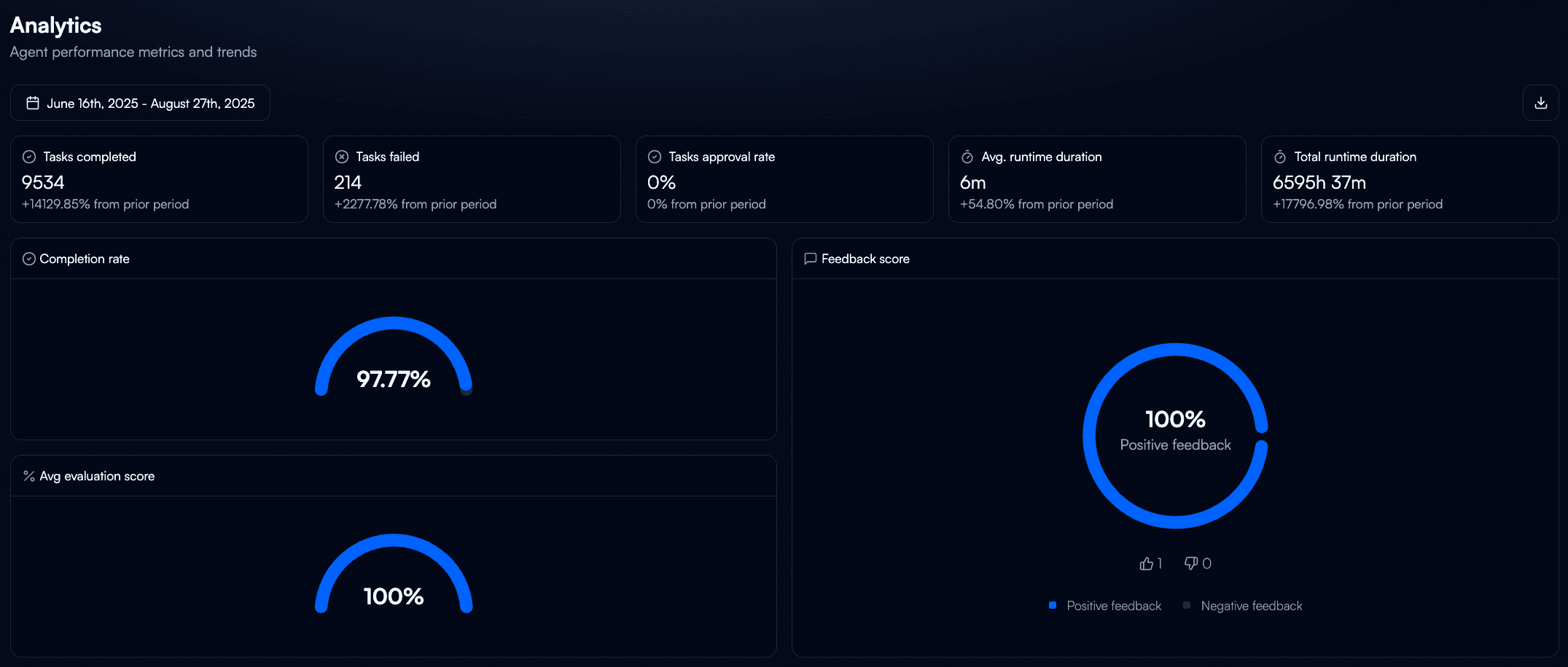 Monitoring Dashboards to track completions, failures, and runtime efficiency